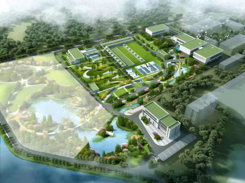 珠海市金灣區(qū)紅旗水質(zhì)凈化廠3D鳥(niǎo)瞰圖,蘇伊士為其提供設(shè)備供貨及相關(guān)技術(shù)服務(wù)。