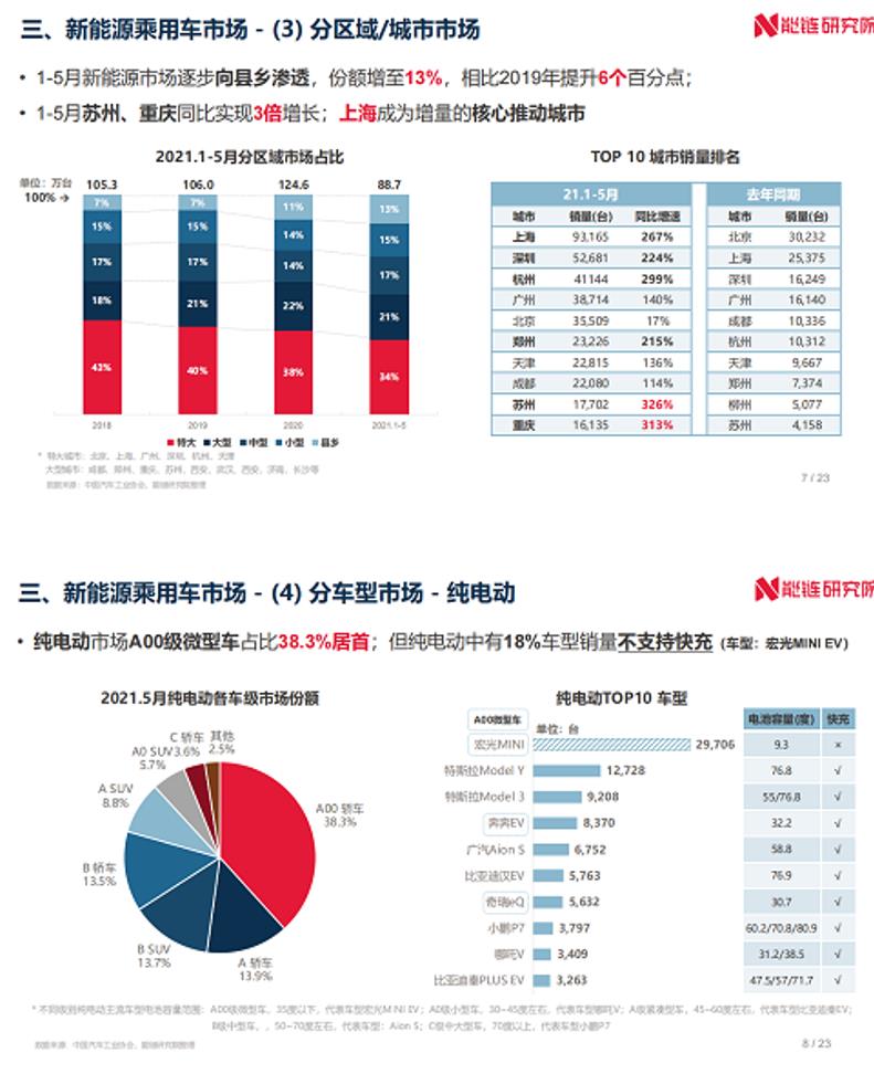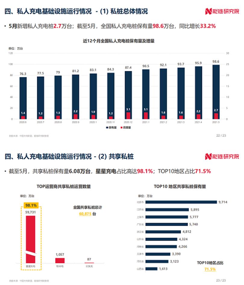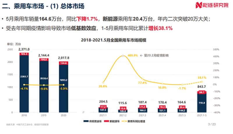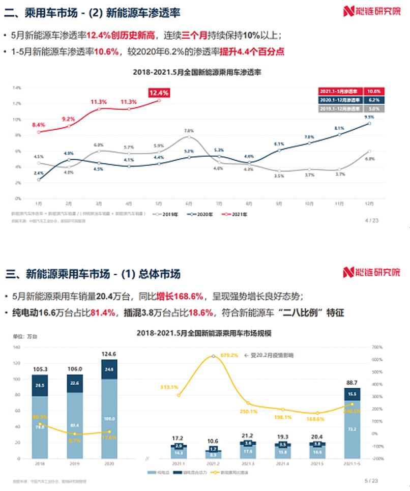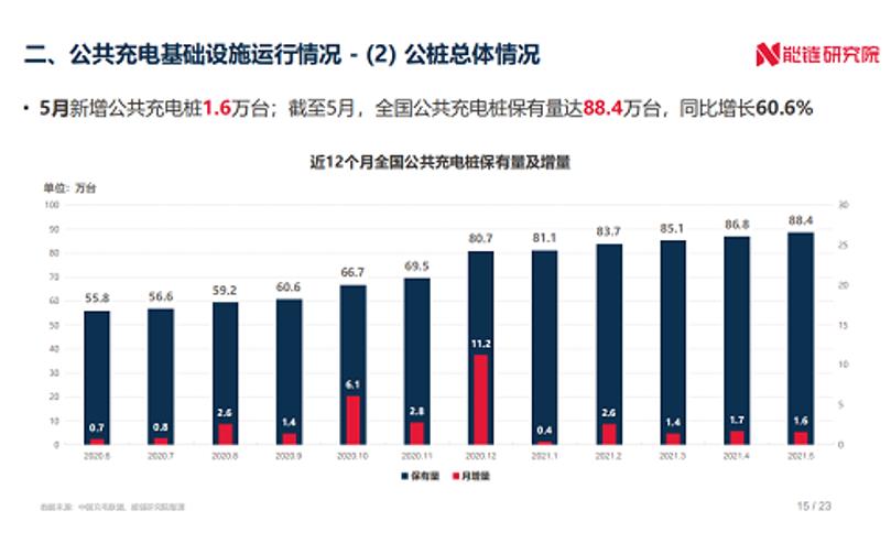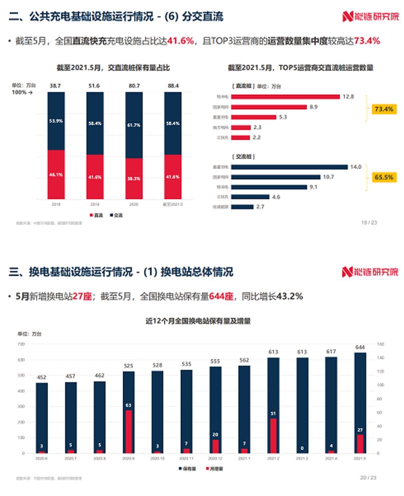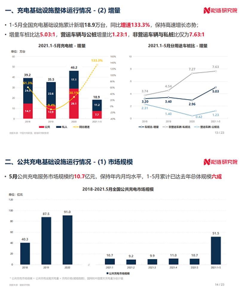 能鏈研究院發布《2021年5月新能源交通領域運行報告》,內容涵蓋全國新能源汽車市場及充換電基礎設施兩部分,監測月度新能源汽車市場、新能源汽車行使里程、充換電基礎設施建設、充電價格指數等多維度運行數據。