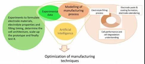 b. 制造過程數字化:開發靈活的制造流程和高精度建模工具,以優化工藝、條件和機器參數,開發用于處理電極漿料,電極片生產,電池組裝,電池包組裝和電池性能的實時模型(即用于電池制造的數字化模型)。