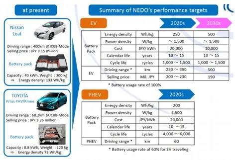 圖10. 日本NEDO的2020年和2030年電池性能目標