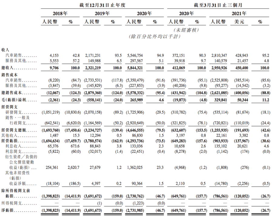 這也是小鵬汽車需要融資的主要原因。此外,小鵬汽車的毛利率一直處于負值,被稱為“賣一輛虧一輛”。直至2020年第三季度,其毛利率則首次實現轉正,達到4.6%。