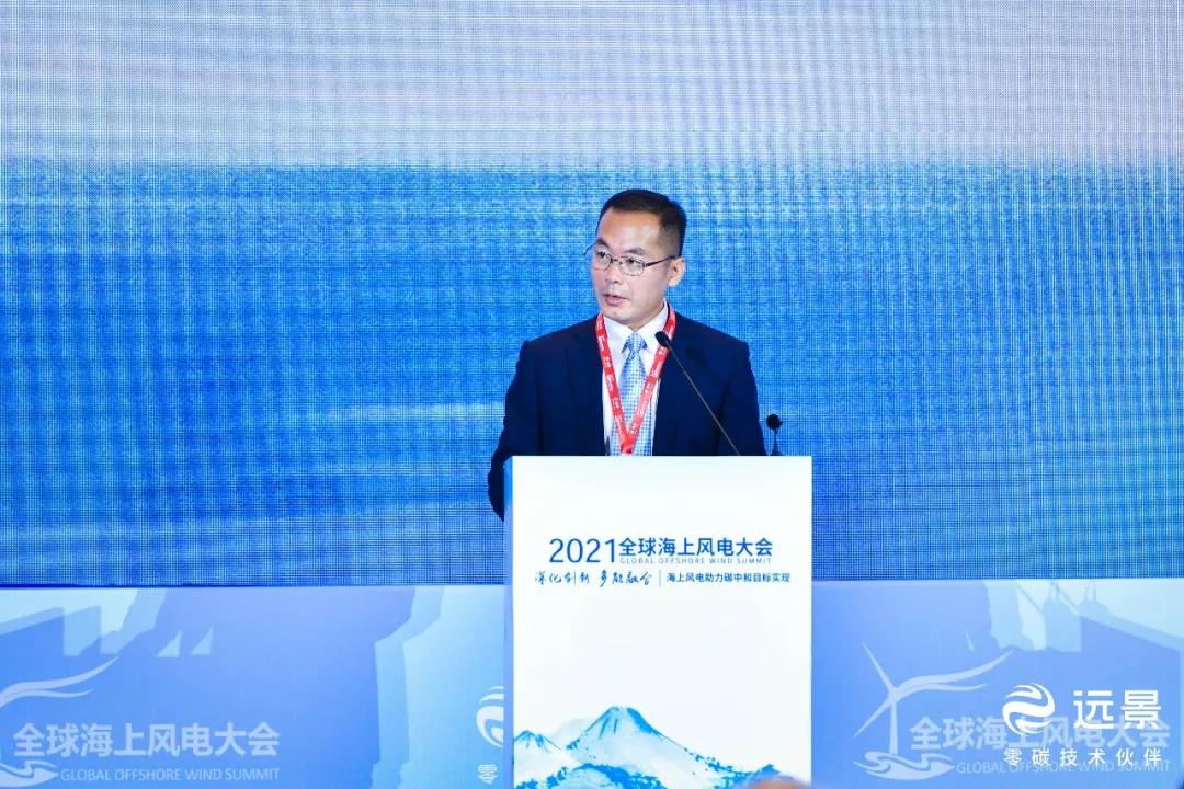 遠景能源高級副總裁田慶軍在大會開幕式上發表演講。田慶軍認為,中國海上風電潛力巨大,3-5年內中國所有海域基本都可以實現平價,是沿海經濟發達地區實現碳中和的必然選擇。
