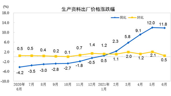 2021年6月份,全國工業(yè)生產(chǎn)者出廠價格同比上漲8.8%,環(huán)比上漲0.3%;工業(yè)生產(chǎn)者購進價格同比上漲13.1%,環(huán)比上漲0.8%。上半年,工業(yè)生產(chǎn)者出廠價格比去年同期上漲5.1%,工業(yè)生產(chǎn)者購進價格上漲7.1%。