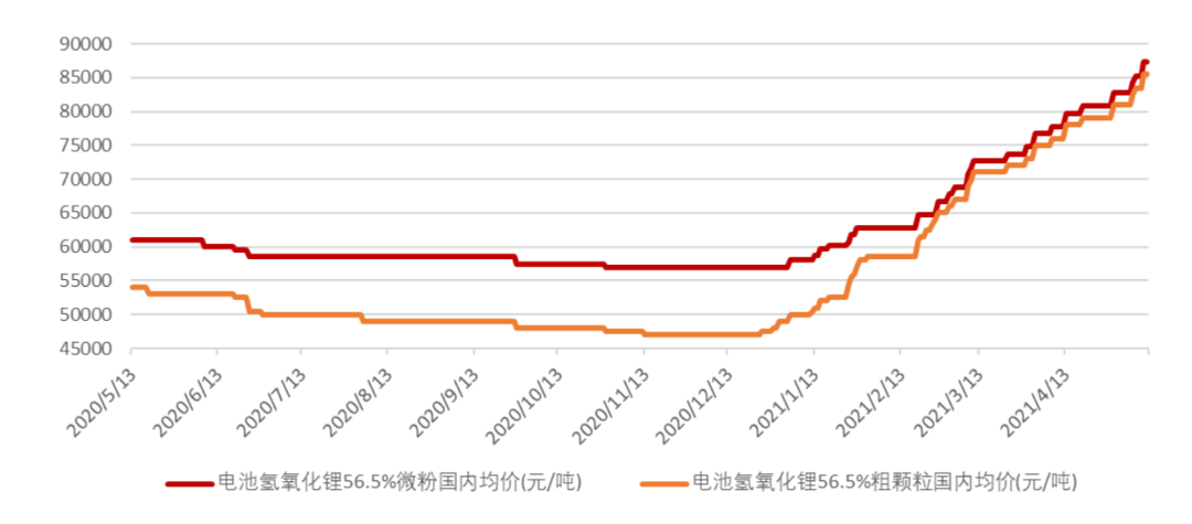 “電池級(jí)氫氧化鋰現(xiàn)貨均價(jià)為每噸89500元,較去年年底上漲了80%;碳酸鋰材料價(jià)格已從去年年中的每噸3.8萬(wàn)元漲到了目前的9萬(wàn)元”,國(guó)軒高科相關(guān)負(fù)責(zé)人對(duì)中國(guó)汽車報(bào)表示。