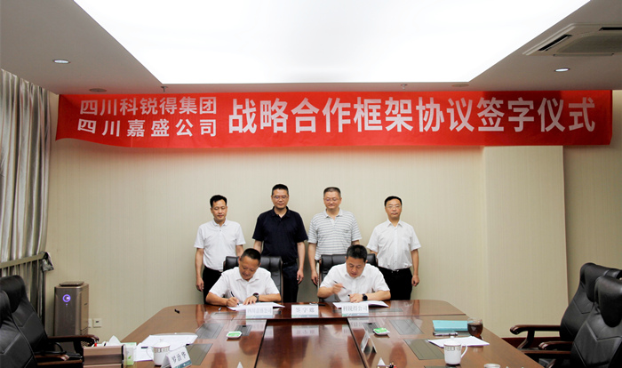 7月16日上午,阿壩電力公司董事長蔣平、副總經理鄧川江,四川嘉盛公司董事長澤讓東珠一行到四川科銳得實業集團有限公司簽署戰略協議并進行座談交流。科銳得公司總經理、黨委副書記王剛,副總經理張志遠,發電公司總經理劉正雄參加會議。