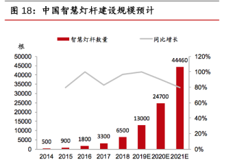 根據(jù)OFweek,川財證券研究所的數(shù)據(jù)顯示,從2014年到2021,我國智慧燈桿的數(shù)量都在逐年上漲,保守估計2021年我國智慧燈桿數(shù)量達到44460根。