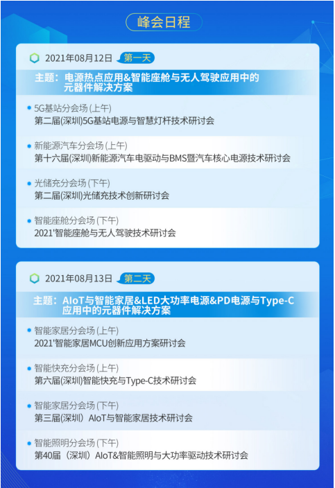 而且此次峰會加上第二屆(深圳)5G基站電源與智慧燈桿技術研討會,將會開展了8場研討會,分兩天舉行,分別是: