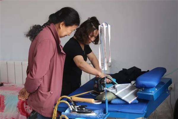 接著,富民社區(qū)和共建單位前往參觀棉被廠和手工藝品展廳。參加活動(dòng)的人員現(xiàn)場接觸到了已制作好的棉被,棉被均采用優(yōu)質(zhì)棉花,質(zhì)地柔軟舒適,獲得了大家的好評。部分參觀人員還由師傅教學(xué),上手學(xué)習(xí)縫紉機(jī)的使用技術(shù),體驗(yàn)到棉被生產(chǎn)之不易。活動(dòng)最后,參會(huì)人員到手工藝品展廳進(jìn)行參觀,展廳內(nèi)工藝品精美多樣,包括十字繡、字畫、擺件和筆筒等,參觀者都感受到了殘障人士在制作時(shí)的細(xì)致和用心。