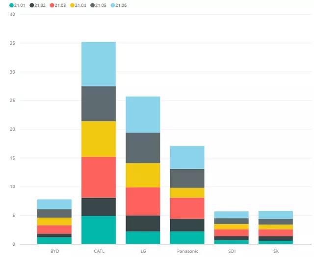 說完新能源汽車的增長,再回到動力電池的銷量數(shù)據(jù)。從來看,目前中國和韓國的電池供應商都在持續(xù)上量。2021年上半年: