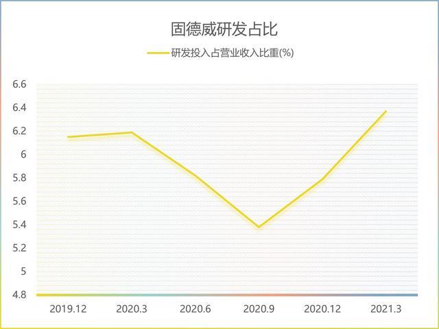 在研發創新方面,固德威穆迪·BVD創新指數維持在65分。一季度研發費用2382萬元,同比增長105.36%,研發占比6.37%,同比增加0.18個百分點,主要系引進研發人才,增加研發項目投入所致。從全年研發投入看,固德威2020年研發投入總額為9200萬元,2019年度研發投入總額為5816萬元,較上年度增長58.19%。2020年研發人員為280人,較上年度167人增長67.66%。儲能技術仍然在快速發展,新的更具競爭力的儲能技術也會進一步涌現,固德威對研發創新投入力度的增加,也是在未來保證核心競爭力的投入。