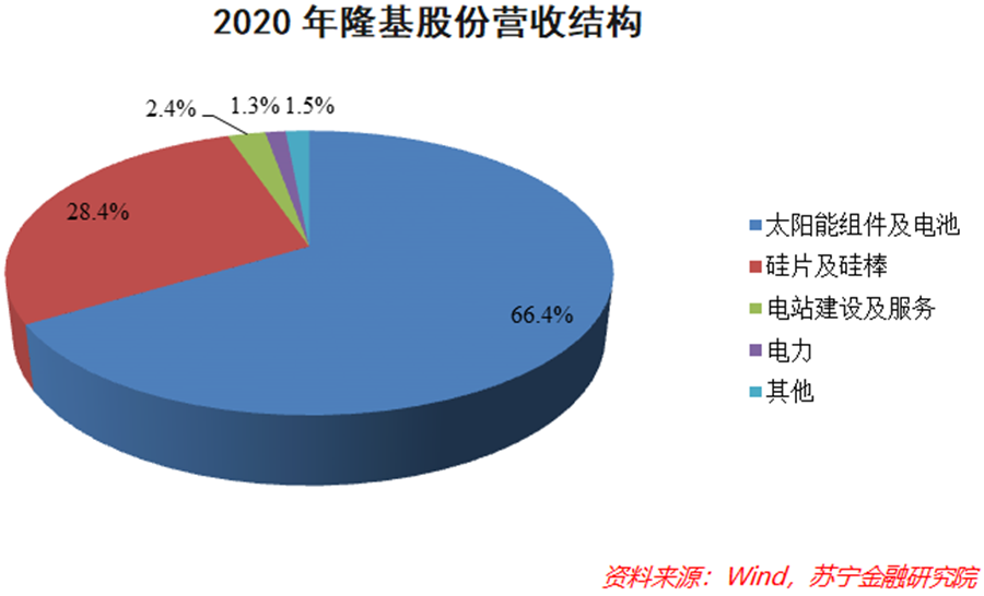 具體業務結構方面,2015年以前,單晶硅片產品是公司營收的主要來源,占比超過80%;此后公司逐漸向光伏產業鏈下游發力,電池組件業務營收開始提升,并在2016年正式超過硅片業務,成為了公司又一核心增長點。2020年,“太陽能組件及電池”與“硅片及硅棒”分別貢獻了公司營收的66.4%和28.4%。