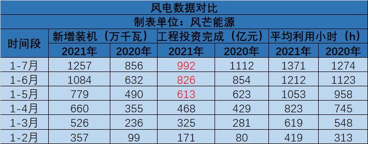 8月19日,國家能源局發布1-7月份全國電力工業統計數據。其中,1-7月風電領域完成投資額為992億元,同比下滑10.8%,下滑幅度較大。