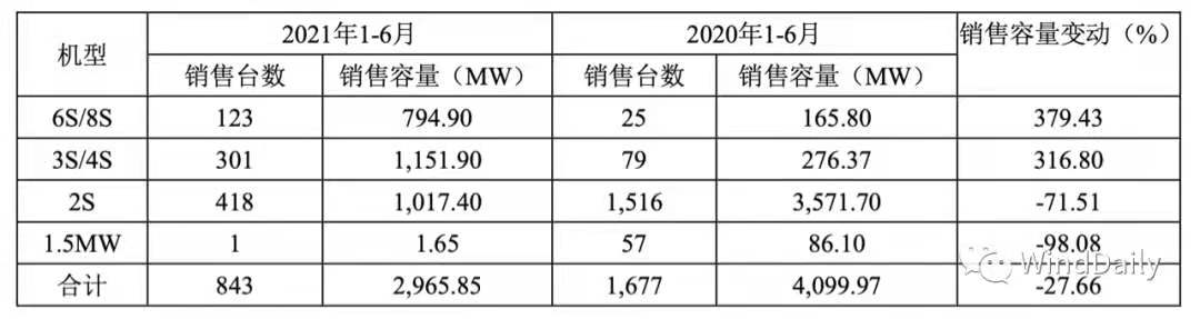 與行業(yè)機組大型化趨勢一致,報告期內(nèi),3S/4S平臺機組及6S/8S平臺機組銷售容量大幅提升,分別較 去年同期增長316.80%及379.43%,2S平臺機組占比明顯下降, 3S/4S平臺機組銷售占比由去年同期的6.74% 大幅提升至38.84%;6S/8S平臺機組的銷售占比也由去年的4.04%增加至26.80%。