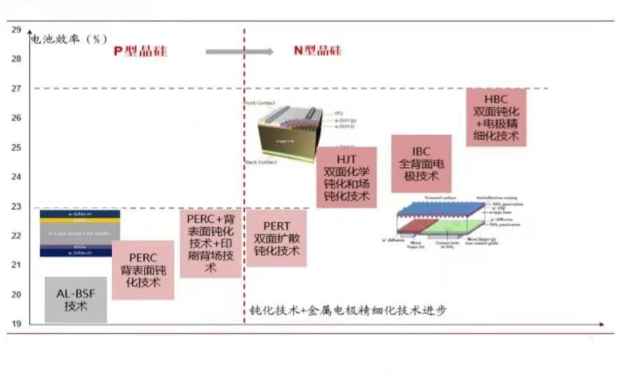 從本質上講,HJT是一種單晶硅電池片,因此,HJT所處的環節是中下游的電池片,與HJT構成競爭關系的單晶硅電池片品類還包括PERC、TPOCon等。