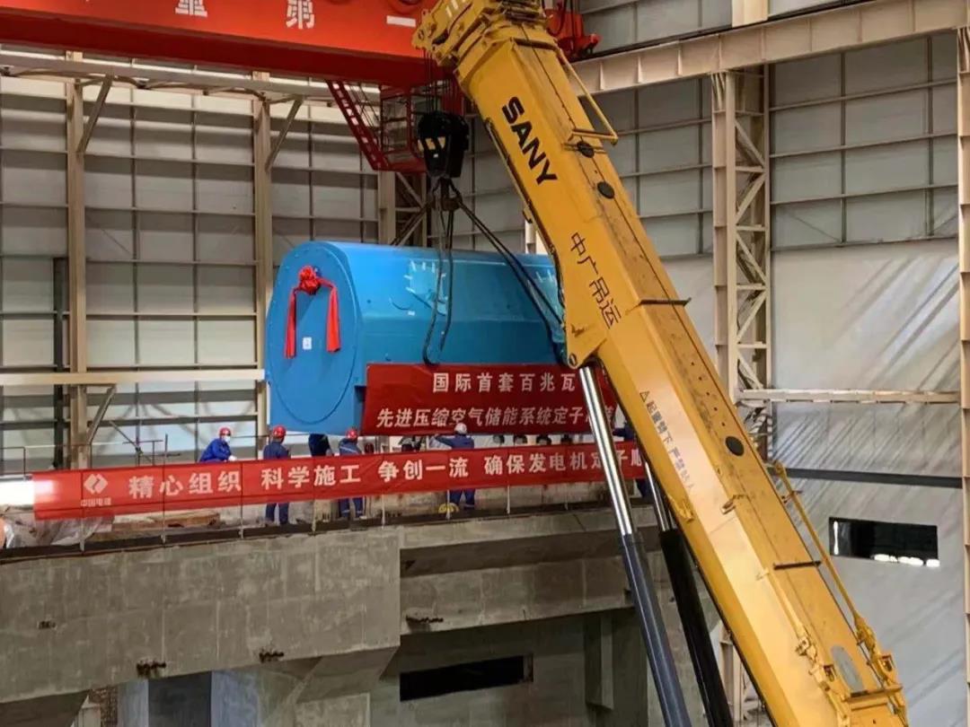 國際首套100MW先進(jìn)壓縮空氣儲能發(fā)電機定子順利吊裝就位