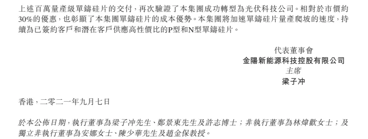 9月7日,金陽新能源科技控股有限公司(以下簡稱“金陽新能源”)公布業(yè)務發(fā)展最新情況!