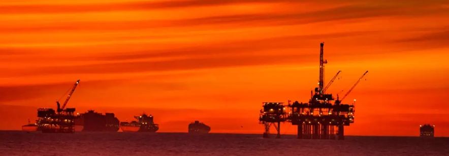 2021年1月12日(星期二),太陽在美國加州亨廷頓海灘 (Huntington Beach)海岸外的集裝箱船和石油平臺上落下。