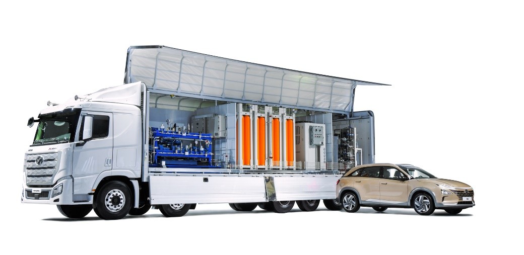 現(xiàn)代汽車集團(tuán)移動(dòng)型加氫站(H Moving Station)一次可為多達(dá)25輛NEXO的氫燃料電池系統(tǒng)進(jìn)行充氫