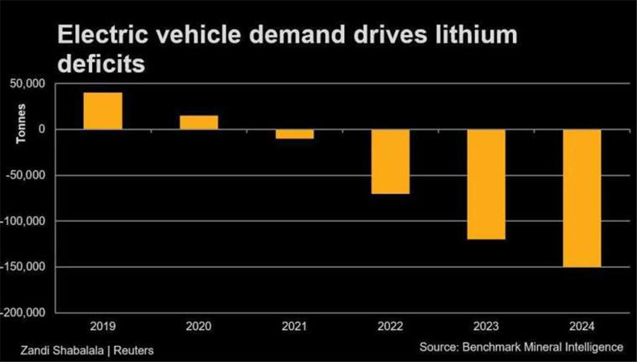 Benchmark Mineral Intelligence數據顯示,鋰需求將大增26.1%,使今年的市場缺口達到1萬噸。