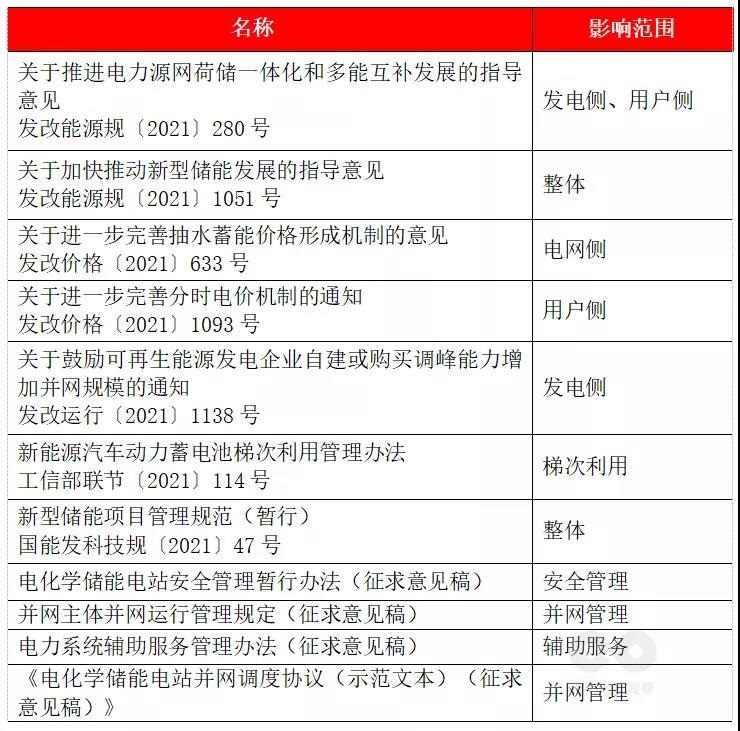2021年9月底,《新型儲能項目管理規范(暫行)》《電化學儲能電站并網調度協議(示范文本)(征求意見稿)》先后發布。在此之前,涉及儲能整體發展規劃、項目管理、價格機制等多個文件都在2021年出臺。