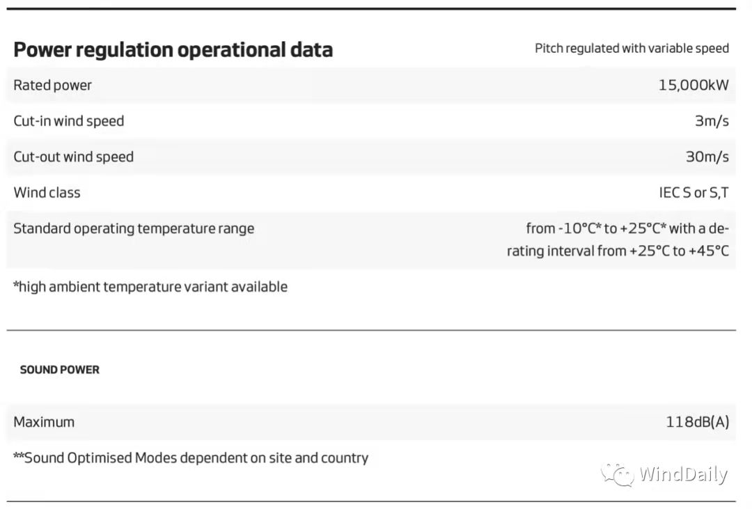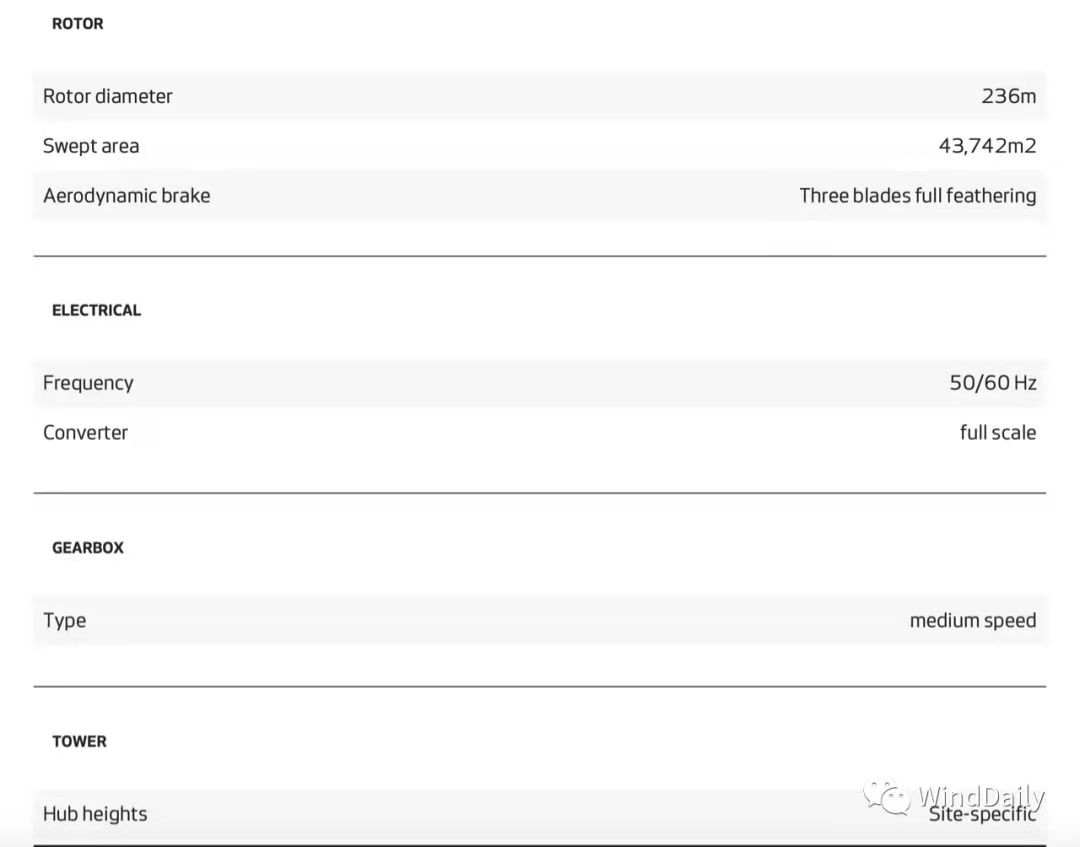 維斯塔斯V236-15MW機型技術參數(shù)如下: