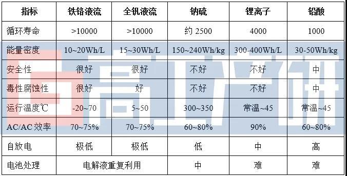 液流電池與其他電化學電池技術對比