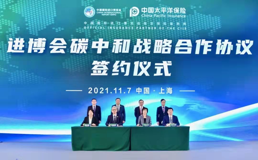 隨后論壇召開了第四屆進博會碳中和發布會,中國太保產險與中國國際進口博覽局、國家會展中心(上海)有限責任公司、中國投資協會能源投資專業委員會、上海環境能源交易所股份有限公司等五方,進行了戰略合作簽約及啟動儀式。