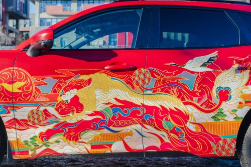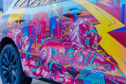 將傳統文化變為國潮,考驗著設計師的功力。“國潮設計師不能對老祖宗留下的文化遺產進行‘貼圖式設計’,而要將傳統與時代結合起來進行創新,否則就是一潭死水。”他說。當風行T5 EVO映入眼簾,吳堯的腦海中靈光乍現。“就像找到知音的那種感覺”,他談道,“與其說是我選擇風行T5 EVO作為創作藍本,不如說是它的潮酷給了我靈感。風行T5 EVO跟我印象中的汽車不一樣,它活力四射的車身線條、不拘泥于傳統的配色,都透著‘潮酷’的感覺,同時又有向前沖的力量感,我能感受到這個品牌徹底變革和一往無前的精神,而這種創新、變革,和我一直堅持的設計理念是一致的。“