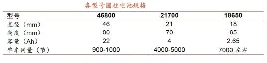 2、單體容量大:大體積設(shè)計(jì)使電池容量提升至傳統(tǒng)電池容量的5倍(預(yù)計(jì)30Ah),電池容量的提升也會導(dǎo)致續(xù)航里程有所提升(提高16%);