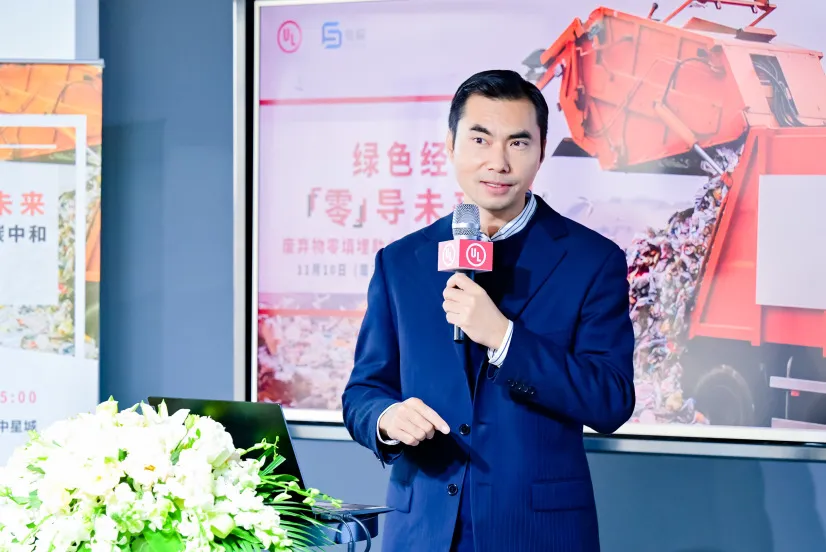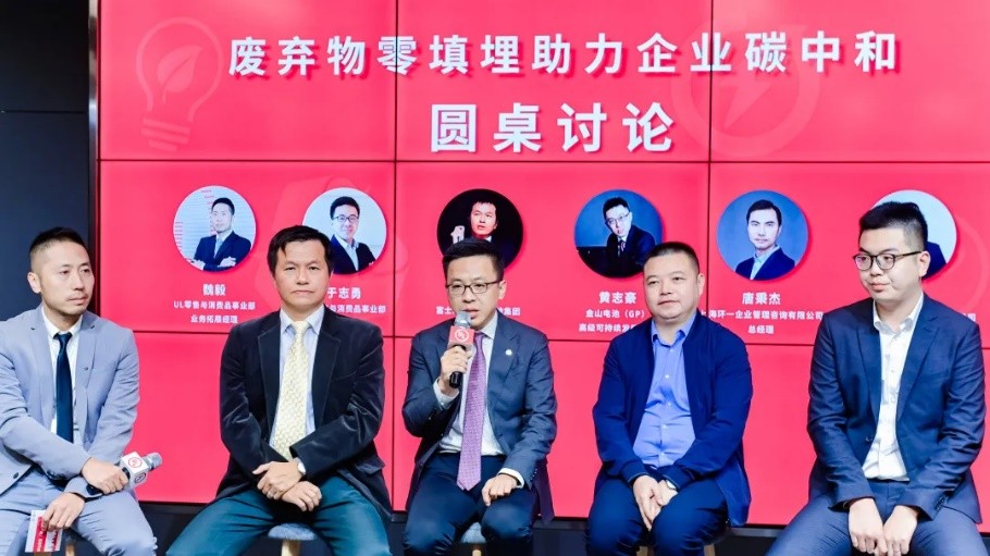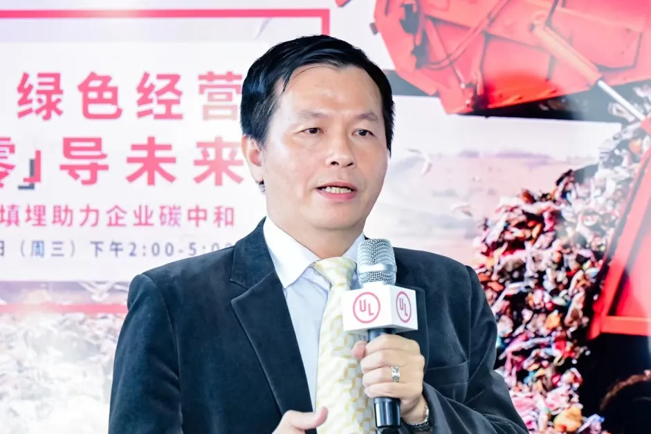 圓桌討論環(huán)節(jié)中,UL零售與消費品亞洲區(qū)銷售總監(jiān)于志勇與企業(yè)領(lǐng)袖代表針對廢棄物零填埋如何助力企業(yè)碳中和進行了交流。