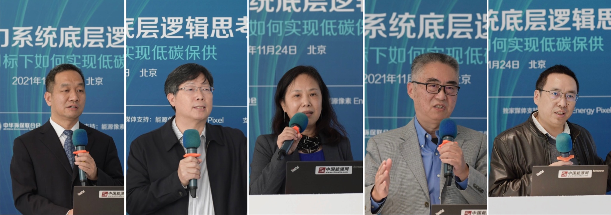從左至右依次為:北京大學(xué)能源研究院副院長(zhǎng)楊雷、中國能源研究會(huì)理事陳宗法、國網(wǎng)能源研究院副院長(zhǎng)蔣莉萍、清華大學(xué)能源互聯(lián)網(wǎng)智庫研究中心主任夏清教授、華北電力大學(xué)國家能源發(fā)展戰(zhàn)略研究院執(zhí)行院長(zhǎng)王鵬教授。