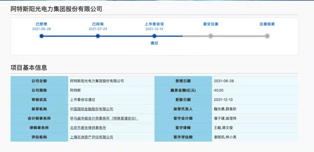 據(jù)了解,阿特斯于2020年7月宣布將其組件和系統(tǒng)解決方案業(yè)務(wù)整合,準(zhǔn)備在上海證券交易所科創(chuàng)板上市。2021年6月,阿特斯向上交所遞交了申報稿,在歷時近半年后,阿特斯獲證交會批準(zhǔn),成功過會。