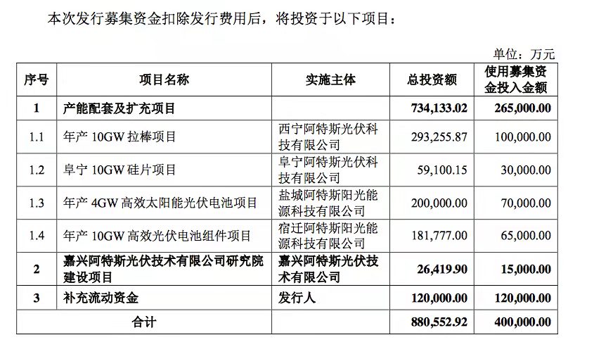 本次科創(chuàng)板過會,阿特斯將募集40億元分別用于年產(chǎn)10GW拉棒項目、阜寧10GW硅片項目、年產(chǎn)4GW高效太陽能電池項目、年產(chǎn)10GW高效光伏電池組件項目,以及嘉興阿特斯技術(shù)研究院的建設(shè)和流動資金補充。