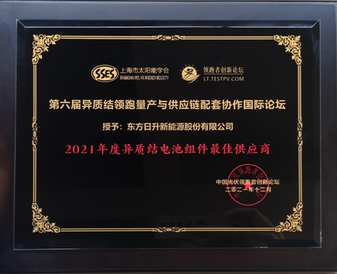 1月13日,“第六屆異質結領跑量產與供應鏈配套協作國際論壇”在無錫圓滿落幕,全球異質結領域頂級機構與領跑企業齊聚盛會,探索平價時代異質結技術的發展新契機。高功率組件技術領先企業東方日升受邀出席活動,并憑借高效N型電池技術與一體化實力,同時榮膺“2021年度異質結電池產業領跑先鋒獎”、“2021年度異質結電池組件最佳供應商”。