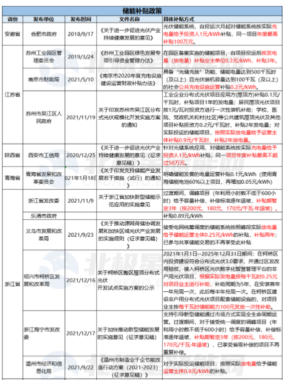 2021年截止到目前共有20省市明確提出來儲能補貼。
