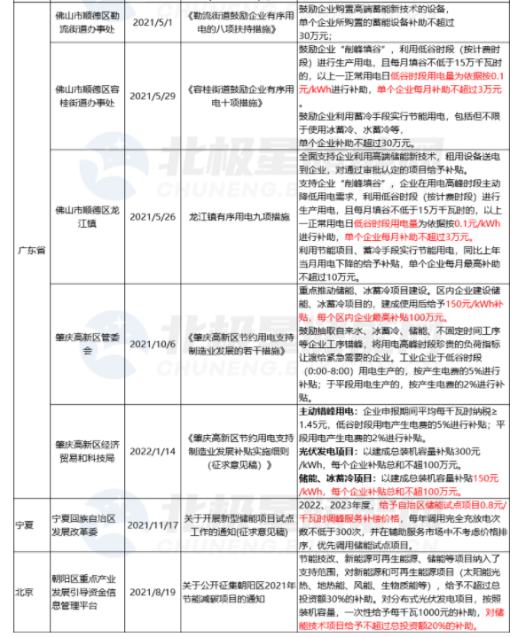 1月13日,廣東肇慶高新區發布《肇慶高新區節約用電支持制造業發展補貼實施細則》,文件指出已參與錯峰用電,或建設光伏、儲能、冰蓄冷項目自用的企業可申報相關補貼,建成使用后給予150元/kWh補貼,每個區內企業最高補貼100萬元。