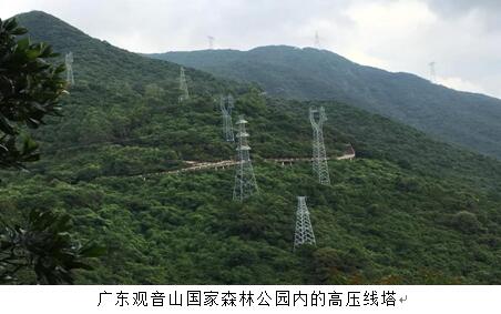 自2002年開始,廣東電網(wǎng)公司東莞市供電局在未經(jīng)公園同意,審批手續(xù)不齊全的情況下,先后將多組高壓線塔強行架設(shè)在觀音山國家級森林公園內(nèi)。