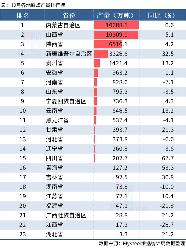 日前,國家統(tǒng)計(jì)局?jǐn)?shù)據(jù)顯示,2021年12月,全國原煤產(chǎn)量38466.8萬噸,同比增長7.2%;1-12月累計(jì)原煤產(chǎn)量407136萬噸,同比增長4.7%。