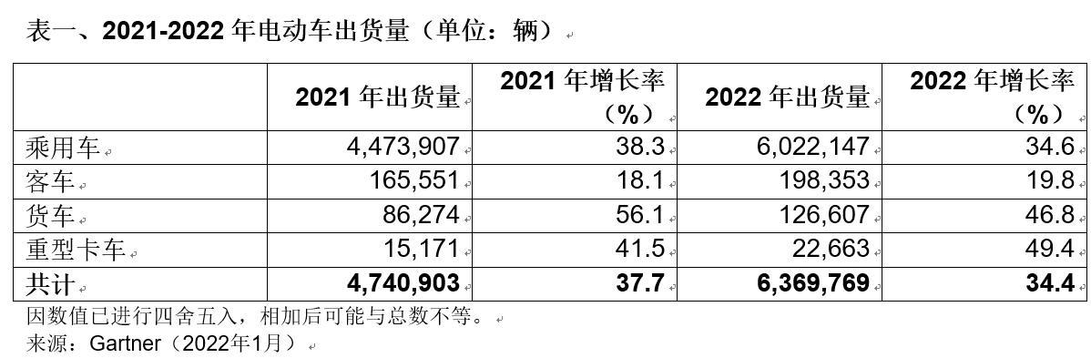 Gartner預測,電動乘用車將占到2022年電動車總出貨量的95%,客車、貨車和重型卡車僅占5%。