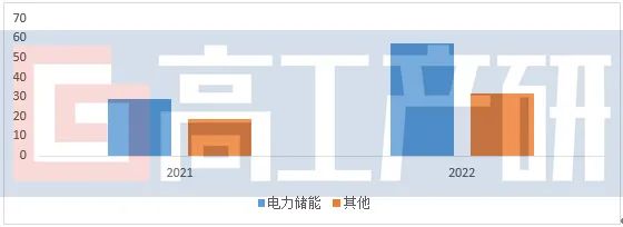 受國內雙碳目標和海外能源通脹水平高位徘徊等因素影響,發電側、電網側和大型工商業用戶側等電力領域仍將是儲能第一大下游應用。尤其是海外歐洲碳減排嚴格執行和美、澳儲能購置補貼政策鼓勵,未來1-2年儲能設備仍處于供不應求的狀態。預計電力儲能2022年全年出貨接近60GWh。