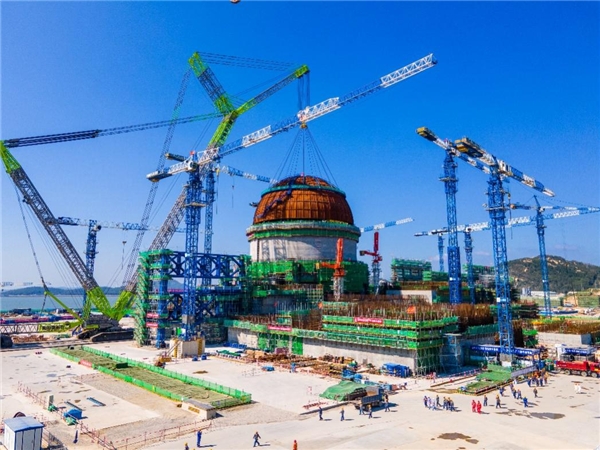 漳州“華龍一號(hào)”工程成功實(shí)踐“開頂法”施工,1號(hào)機(jī)組穹頂?shù)跹b提前完成,首創(chuàng)鋼襯里全模塊化及建安一體化施工技術(shù),在提前引入設(shè)備的前提下,開創(chuàng)單臺(tái)機(jī)組自開工至內(nèi)穹頂?shù)跹b24.5個(gè)月最短工期紀(jì)錄,創(chuàng)造了全球三代核電機(jī)組建造領(lǐng)先業(yè)績;