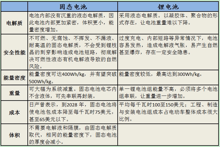 表:固態(tài)電池VS鋰電池差異性對比