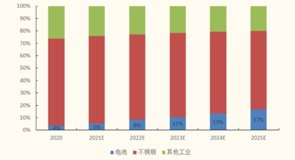 預計2025年電池用鎳需求占比將升至17%