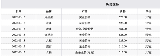 在中國市場,黃金價格已經突破每克500元人民幣。3月13日,菜百黃金價格為每克516元,周生生、老廟黃金的金價都在每克520元以上。金價價格飆漲,燃起人們購買黃金首飾、投資黃金的熱情。