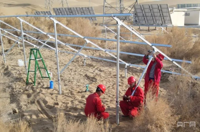 “今年1月9日,首條沙漠公路零碳示范工程在塔克拉瑪干大沙漠正式開工,將有86座光伏電站在這條世界最長貫穿流動性沙漠的等級公路兩旁“落戶”,全面替代柴油機發電抽水灌溉,為沙漠植被提供源源不斷的“綠色”水源。”塔里木油田公司規劃計劃處新能源管理科科長陳亞兵介紹。