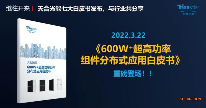 3月22日,天合光能重磅發(fā)布《600W+超高功率組件分布式應(yīng)用白皮書》,系統(tǒng)解析用戶關(guān)心的7大熱點(diǎn)問題。白皮書客觀正視600W+分布式發(fā)展過程中的挑戰(zhàn)并給出全套解決方案,將進(jìn)一步提升分布式光伏效率,建設(shè)完善的600W+分布式光伏生態(tài),也將有力助推分布式光伏整縣推進(jìn)及全社會(huì)低碳化目標(biāo)實(shí)現(xiàn)。