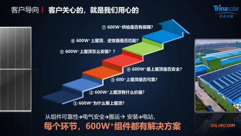 這是市場(chǎng)的需求、更是產(chǎn)業(yè)鏈攜手推動(dòng)的結(jié)果。分布式高功率的趨勢(shì)從去年就開始了,下半年更明顯,在分布式場(chǎng)景,逆變器、線纜等適配性方面全面無憂;去年底,天合光能、天合智慧分布式攜手阿特斯、東方日升、固德威、古瑞瓦特、華為、錦浪、上能電氣、陽光電源、正泰電源以及正泰太陽能共12家全球領(lǐng)線光伏企業(yè)聯(lián)合簽署戰(zhàn)略合作,共同推動(dòng)分布式產(chǎn)業(yè)結(jié)構(gòu)升級(jí)及低碳化進(jìn)程——600W+分布式發(fā)展匯集了各方智慧、共贏”超級(jí)光伏屋頂”新未來。