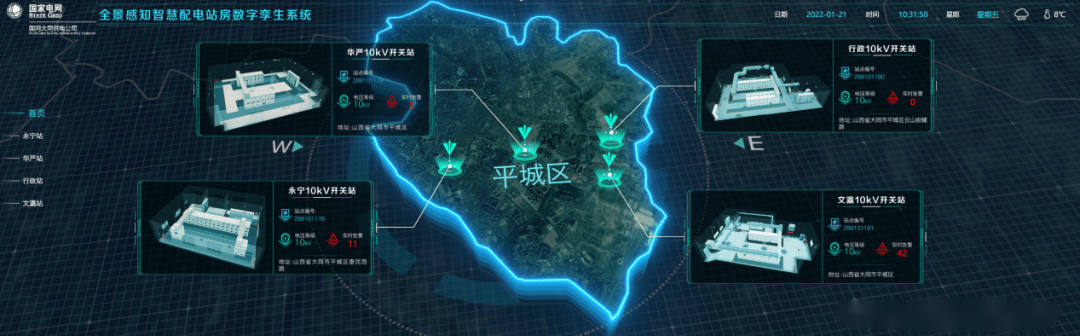 2021年8月,為助力山西省電力公司推進電網數字化轉型,建設可復制的數字化、遠程運維的智慧配電房樣板,國網大同供電公司與平高集團聯合開展全景感知智慧配電站房示范項目建設。根據大同供電公司配電網運維現狀,首批選取永寧、華嚴、行政、文瀛等4座10kV配電站房進行試點建設。項目通過在試點開關站房內集成智能巡檢機器人、煙感、智能門禁、溫濕度監(jiān)測、風機照明控制、視頻監(jiān)控等智能監(jiān)測與控制設備,在控制中心部署平高自主開發(fā)的基于數字孿生的智慧站房云管控系統(tǒng),實現站內設備、環(huán)境全面監(jiān)控,將人工定期巡檢轉變?yōu)橹悄苎b置常態(tài)化巡檢。