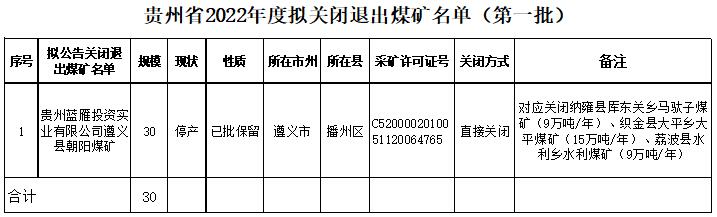 附件:貴州省2022年度擬關閉退出煤礦名單(第一批)