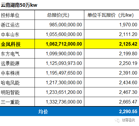 (近日,中國水電四局成功中標(biāo)云南曲靖師宗縣丹鳳風(fēng)電場300MW工程風(fēng)力發(fā)電塔筒及附屬設(shè)備采購項目,項目裝機(jī)容量為300兆瓦,為遠(yuǎn)景EN-192-5.0機(jī)型4段錨栓式基礎(chǔ)塔筒,單套塔筒工程量約281噸,當(dāng)前塔筒價格8800元/ton,測算下來塔筒價格494元/kw)按此測算云南的風(fēng)機(jī)裸機(jī)價格均價在1600-1700元/kw。